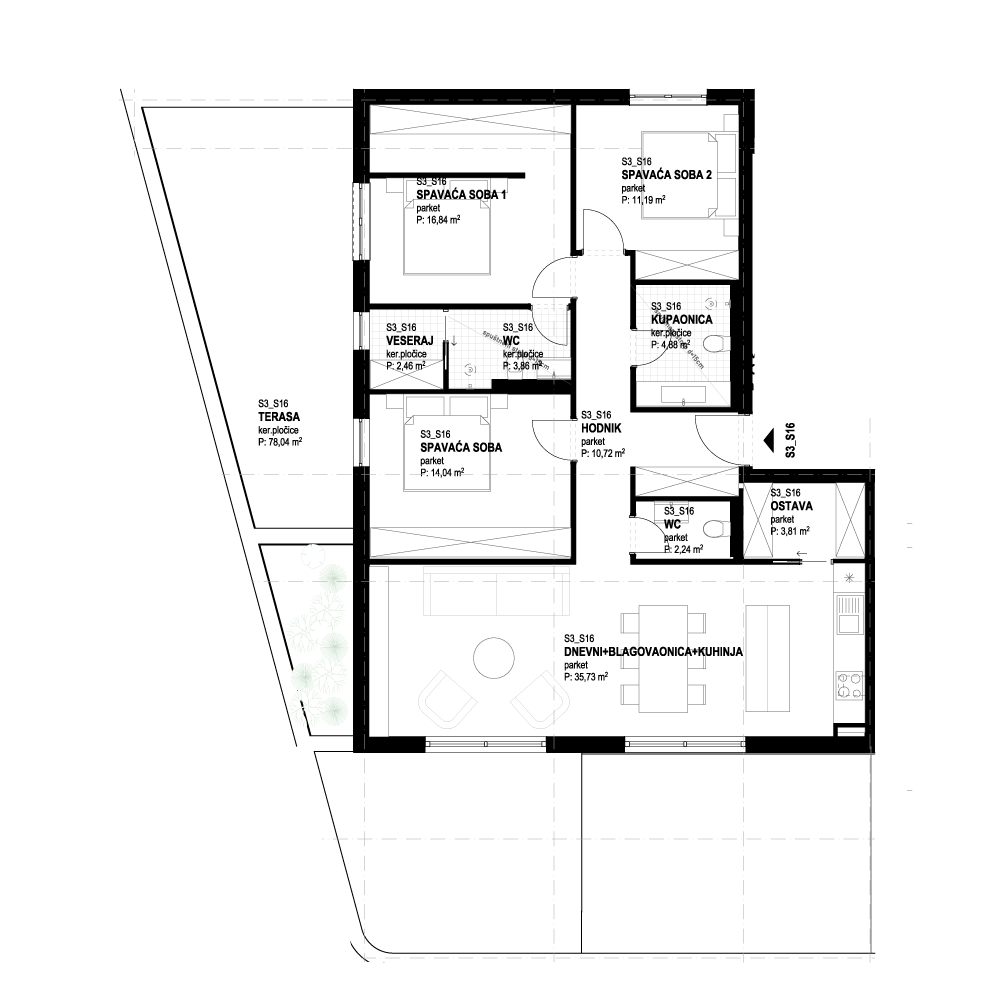 U ponudi projekta Zlatna Bura nalaze se stanovi različitih površina, od 28 m2 do 151 m2.